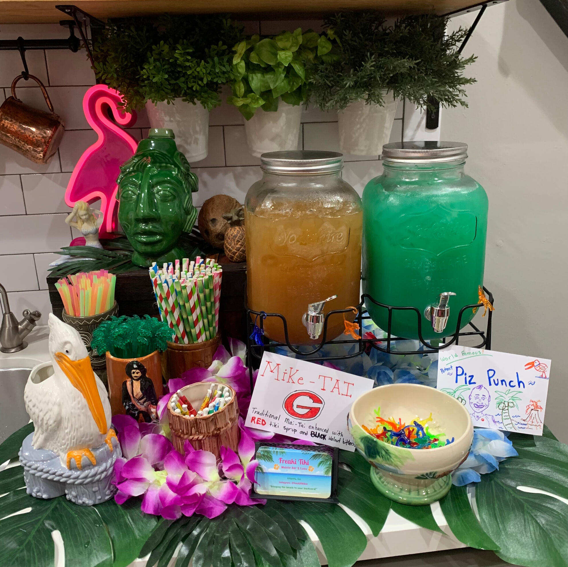 Custom pre-made drinks for your party. Eliminate the hassle of shopping and cocktail making without the need for bartenders. We'll mix and bring the drinks to you. Ideal for smaller gatherings.Includes self service drink station with tropical decor and themed drinkware.Starting at $500